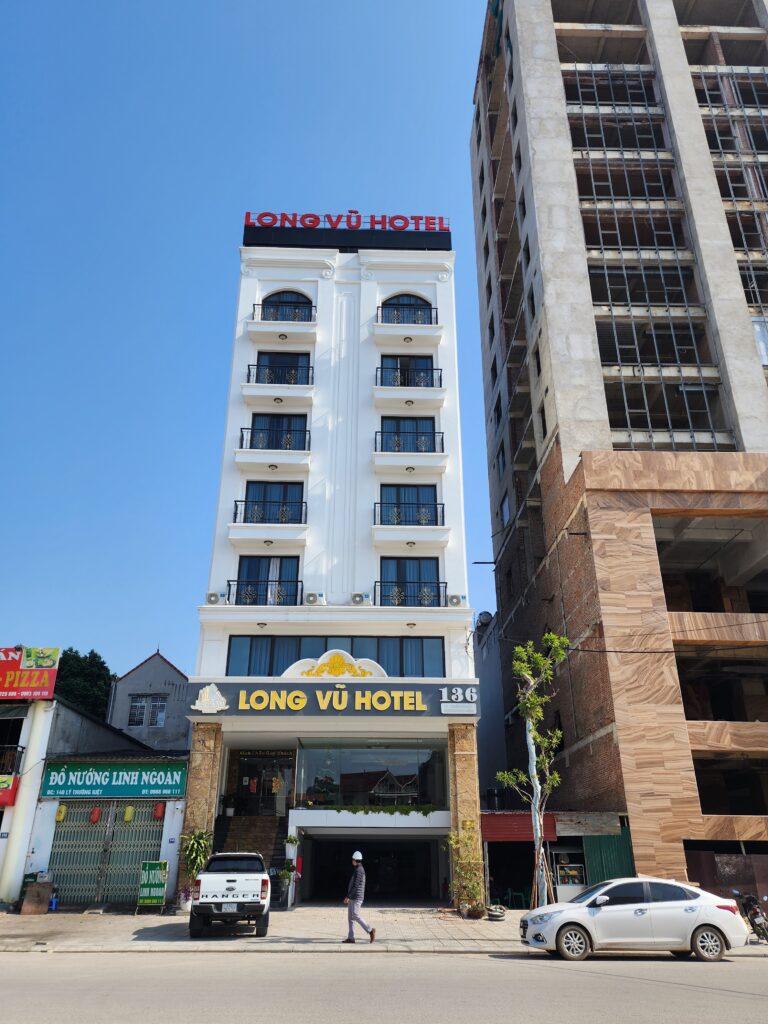 Khách sạn Long Vũ được xây dựng với lối kiến trúc tân cổ điển nhẹ nhàng mà tinh tế. Các đường phào chỉ mềm mại, uyển chuyển khiến cho mặt tiền của khách sạn trông độc lạ và vô cùng cuốn hút. Khu vực sảnh được thiết kế rộng rãi, thoáng mát mang đến cảm giác thoải mái nhất cho khách hàng mỗi khi check in. Mỗi phòng nghỉ đều được thiết kế cửa sổ và ban công lớn để khách lưu trú có thể ngắm nhìn toàn cảnh thành phố Lạng Sơn xinh đẹp.