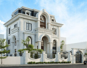 Tổng thể công trình xây dựng nhà phố 3 tầng nhìn từ ngoài vào sau khi hoàn thiện